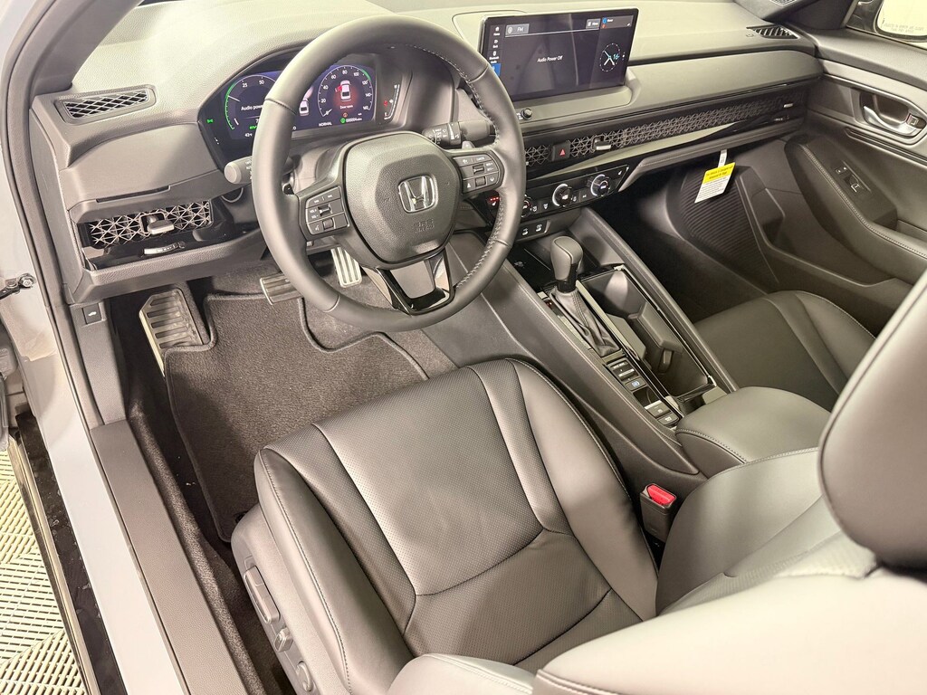 Wheels: 19" x 8.5J Matte Berlina Black, Vehicle Stability Assist (VSA) Electronic Stability Control (ESC), Valet Function, Trunk Rear Cargo Access, Trip Computer, Transmission: Direct Drive Unit -inc: econ, normal, sport and individual modes, Transmission w/Driver Selectable Mode, Traffic Jam Assist, Tires: 235/40R19 96V AS, Tire Specific Low Tire Pressure Warning. This Honda Accord Hybrid has a powerful Gas/Electric I-4 2.0 L/122 engine powering this Variable transmission.